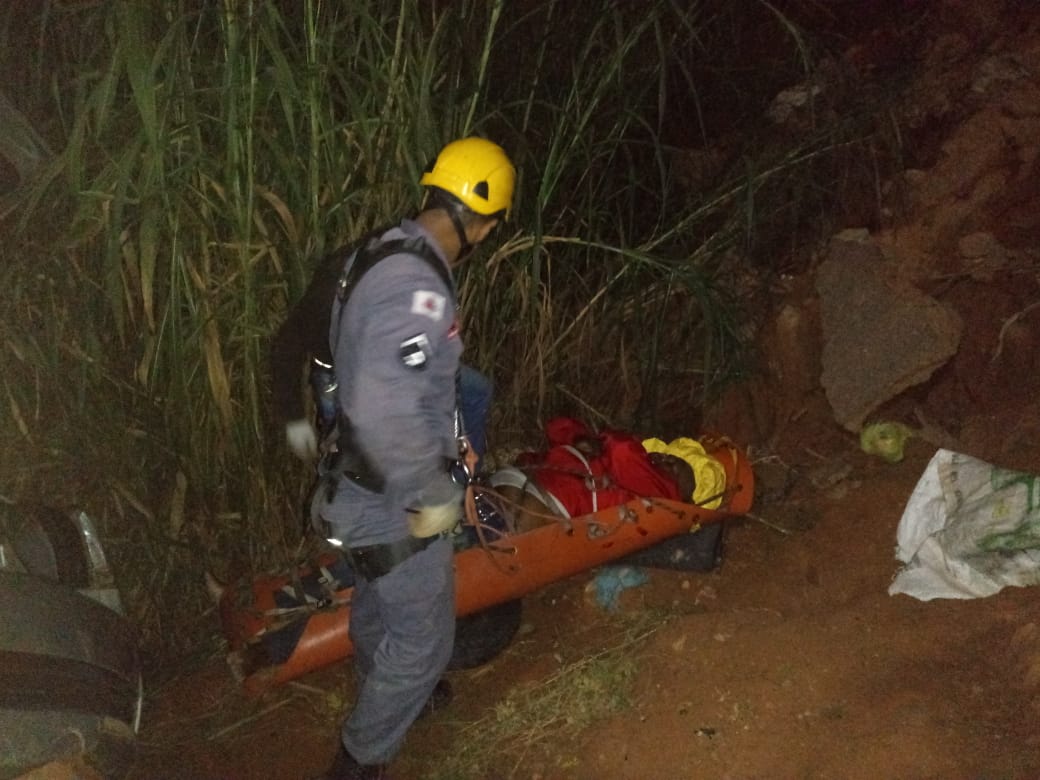 Os Bombeiros utilizaram técnicas de içamento e salvamento em altura para retirar o motorista do local. O veículo estava cerca de quinze metros abaixo da rodovia.