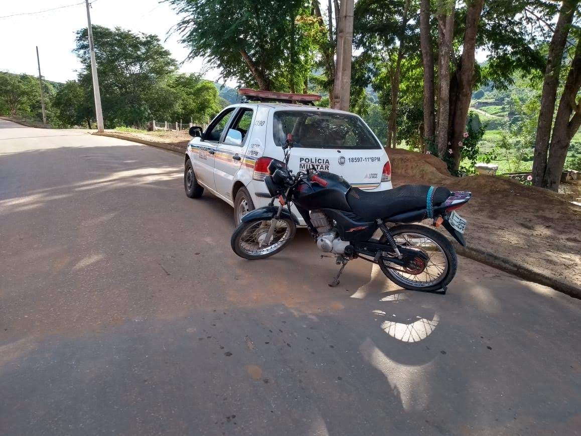 Quando a viatura se aproximou os dois demonstraram nervosismo e ao serem abordados alegaram que pegaram a motocicleta emprestada com um cidadão de Iuna/ES. Mas ao consultar no sistema foi constatado que a moto havia sido furtada.