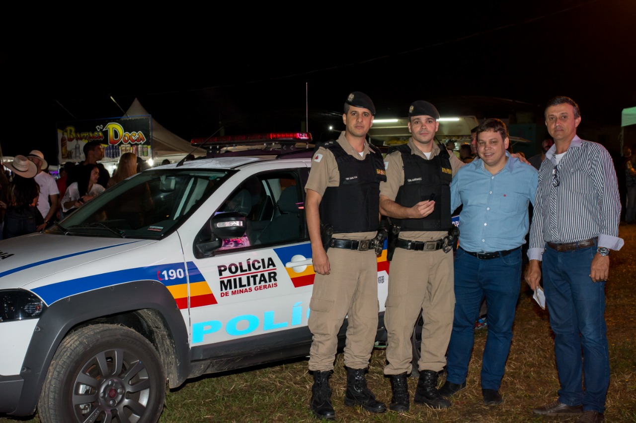 O 1º Tenente Amilton comandante da 29ª Companhia e o 2º Tenente Maxwell comandante do Pelotão PM de Lajinha receberam as chaves, agradecendo o empenho do parlamentar na aquisição da viatura.