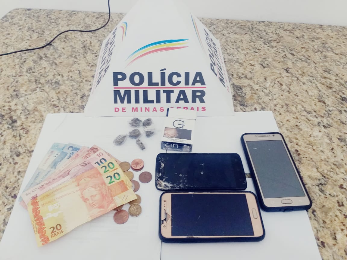 Foi realizada abordagem e busca pessoal nos rapazes. A PM encontrou seis buchas de maconha e 87 reais. O material foi apreendido com os celulares dos envolvidos.