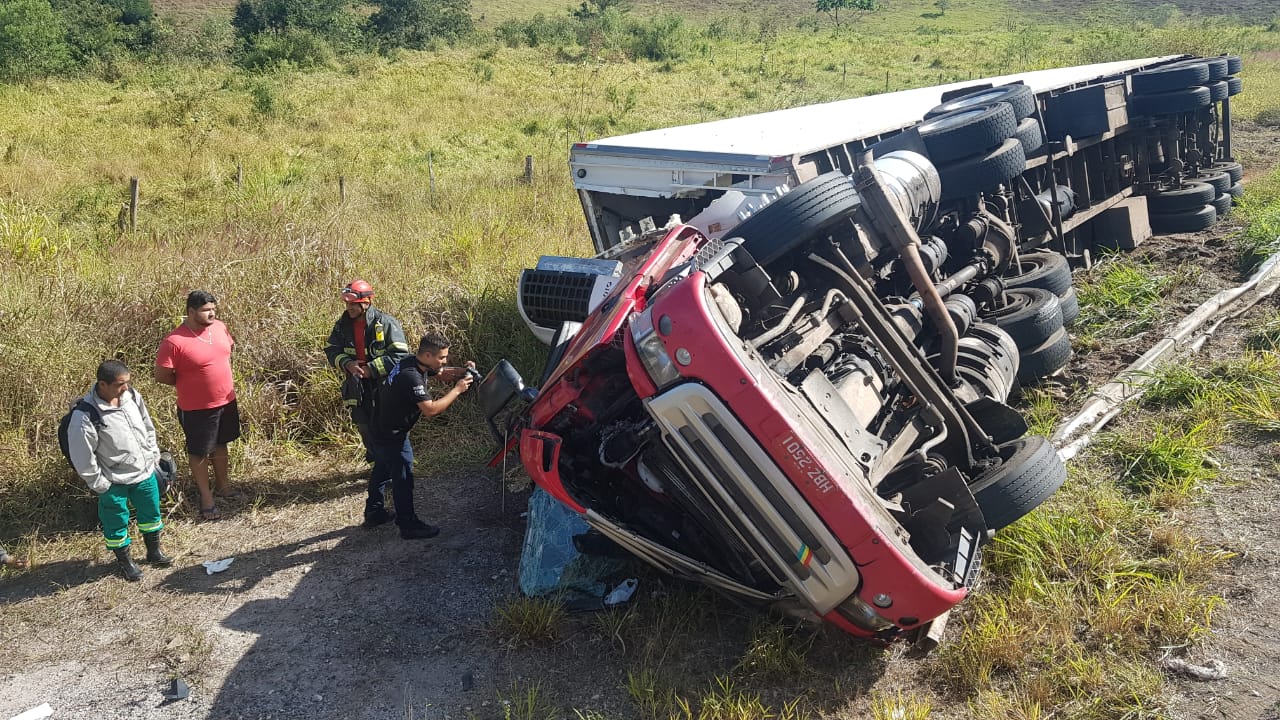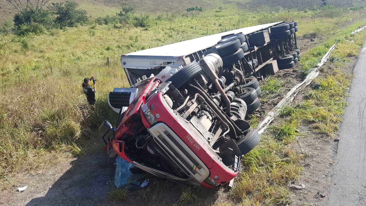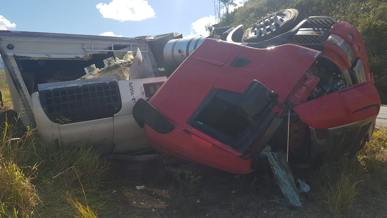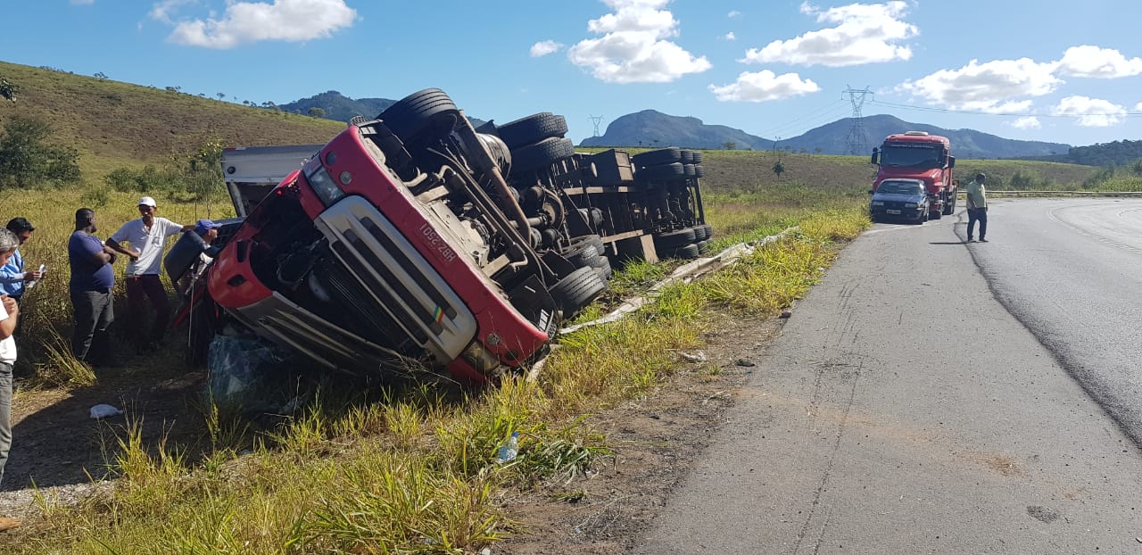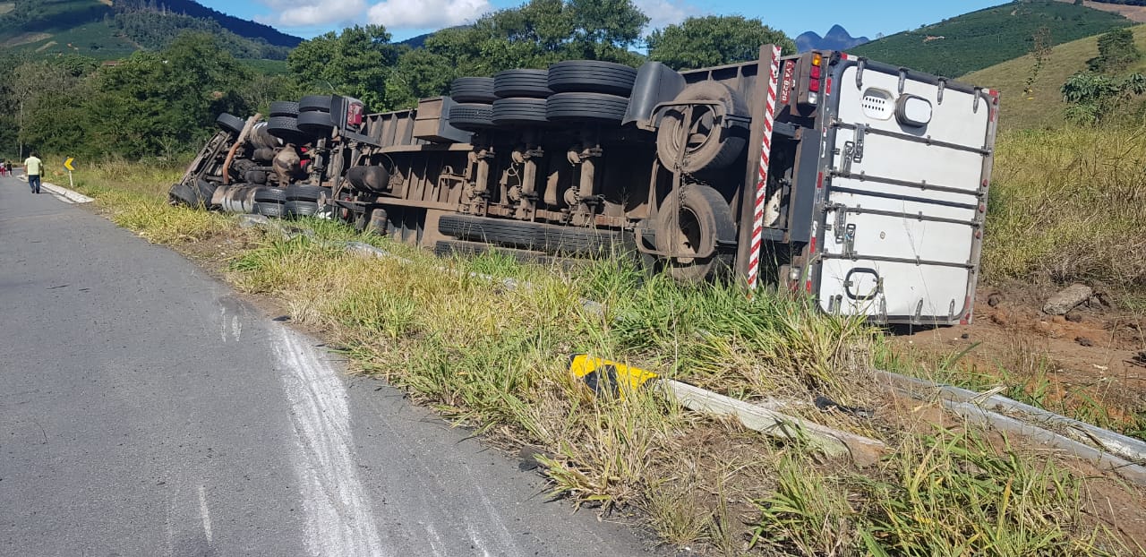 Já no período da manhã, uma carreta tombou ao fazer a curva no local conhecido como “saibreira”, no km 62 da BR-262, próximo a Matipó.
