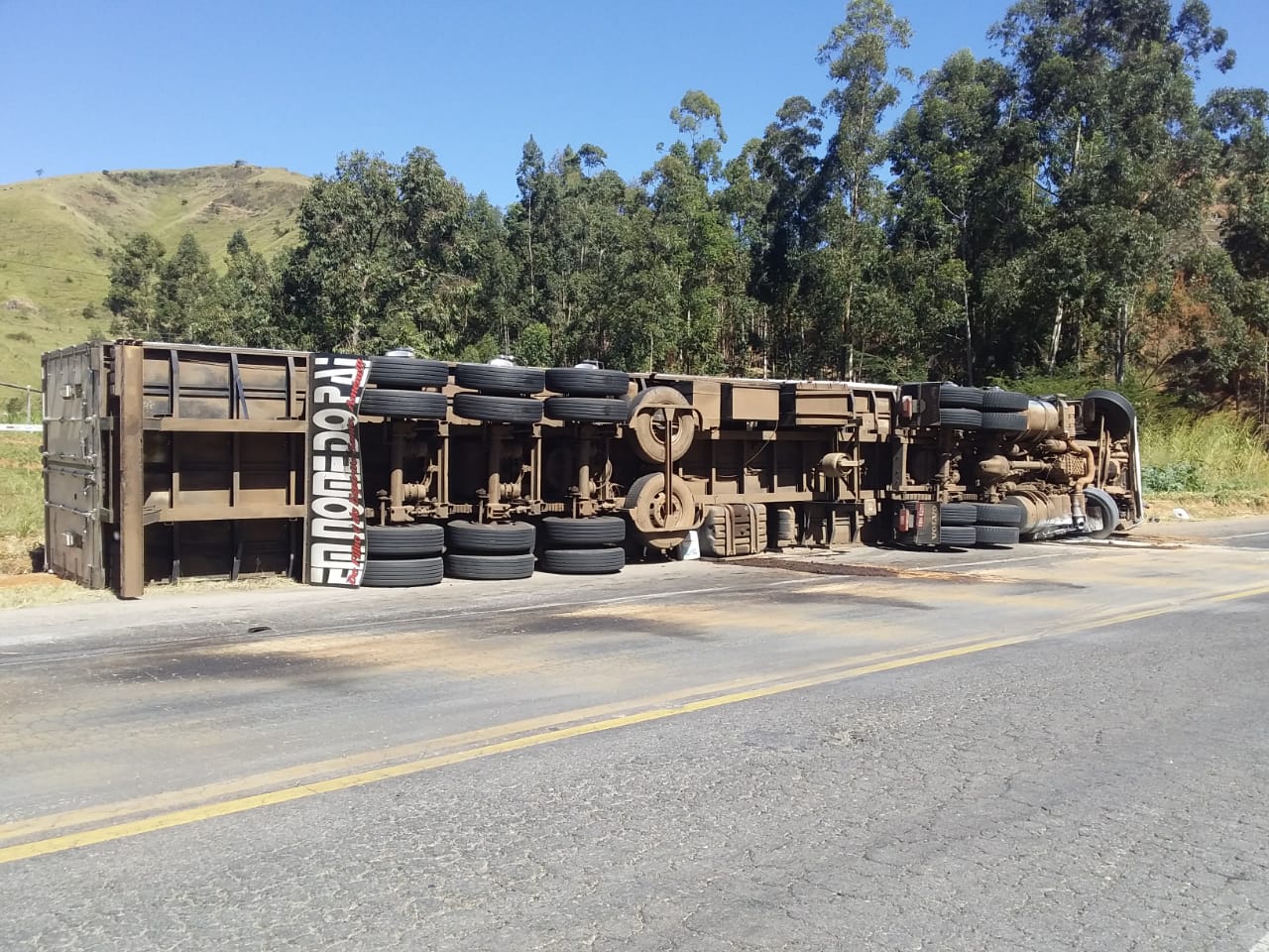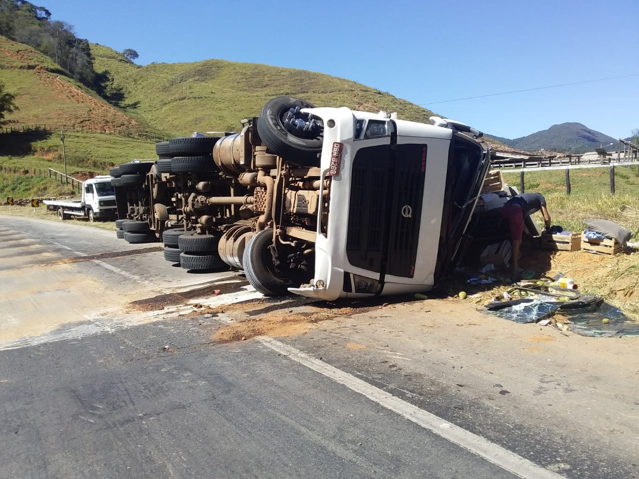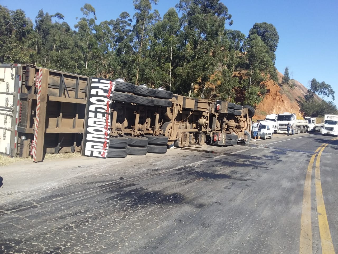 Já no período da manhã, uma carreta tombou ao fazer a curva no local conhecido como “saibreira”, no km 62 da BR-262, próximo a Matipó.