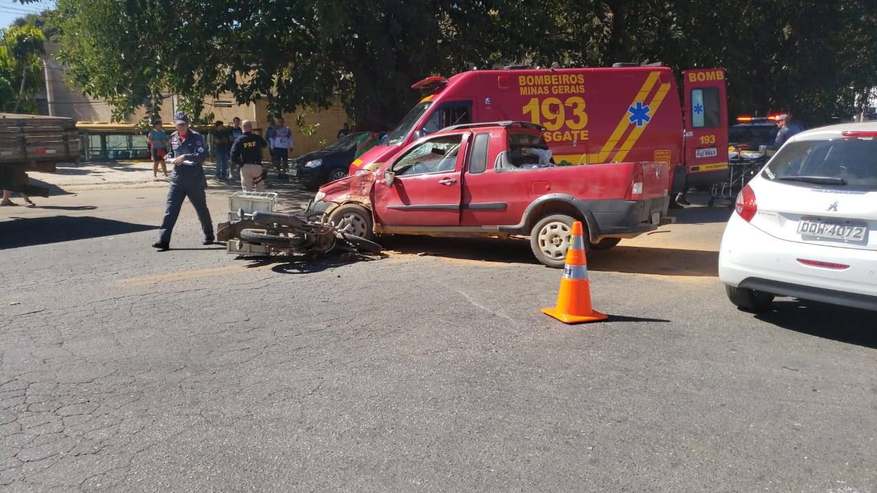 A batida envolveu um carro e uma motocicleta. O motociclista foi socorrido pelos Bombeiros com fratura no punho direito e na perna esquerda. Após ser imobilizada, a vítima de 22 anos foi encaminhada para a Unidade de Pronto Atendimento.