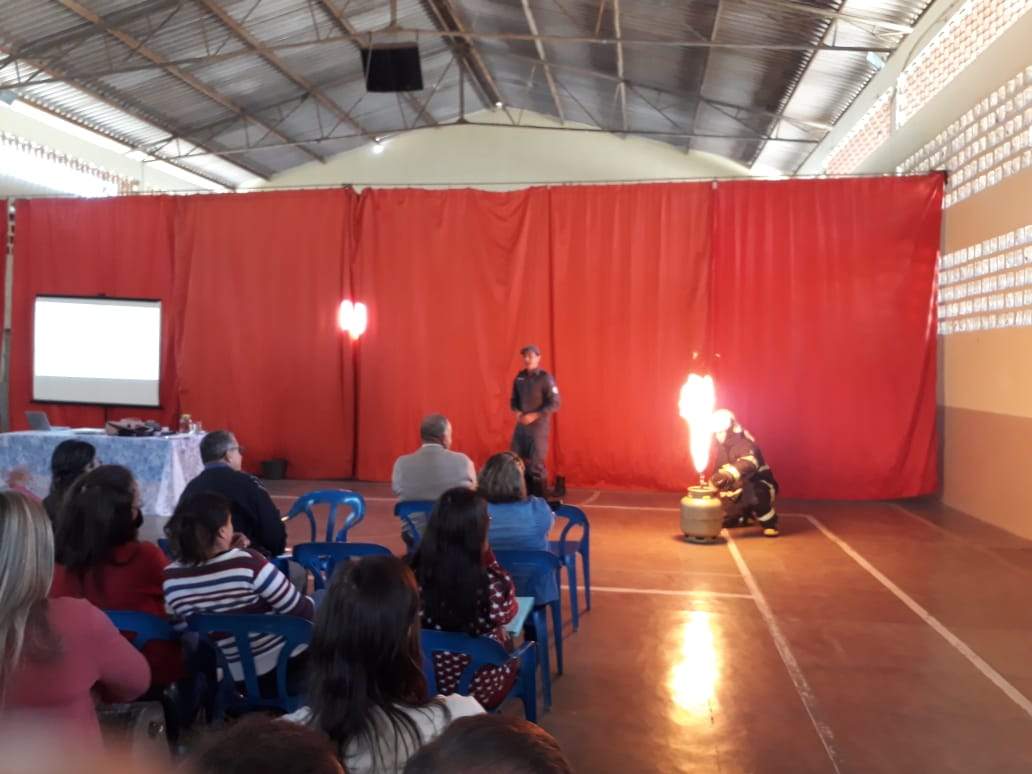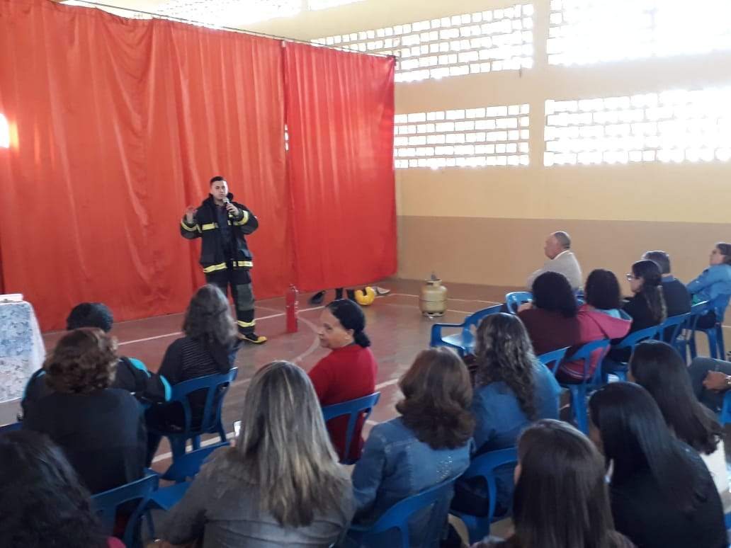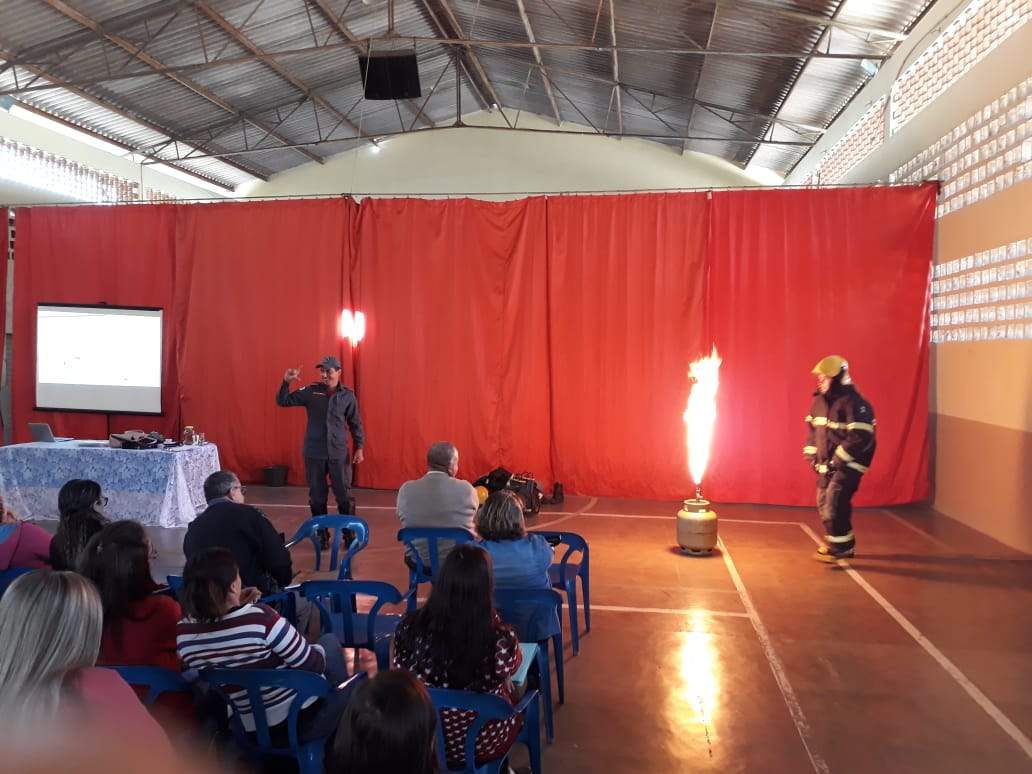 Durante a capacitação, profissionais do Corpo de Bombeiros passam informações e demonstrações práticas com foco na prevenção de acidentes, principalmente aqueles relacionados com vazamentos de gás de cozinha e incidentes com panelas de pressão.