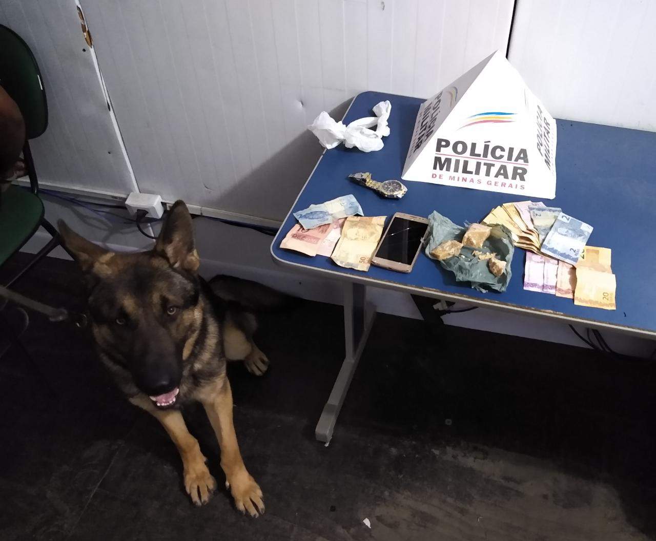 Com apoio do Cão Aquiles, os militares localizaram três pedras brutas de crack. Havia ainda 381 reais e um celular. Os três ocupantes do carro, dois de 21 e 31 anos, foram presos e encaminhados para a Delegacia de Polícia Civil.