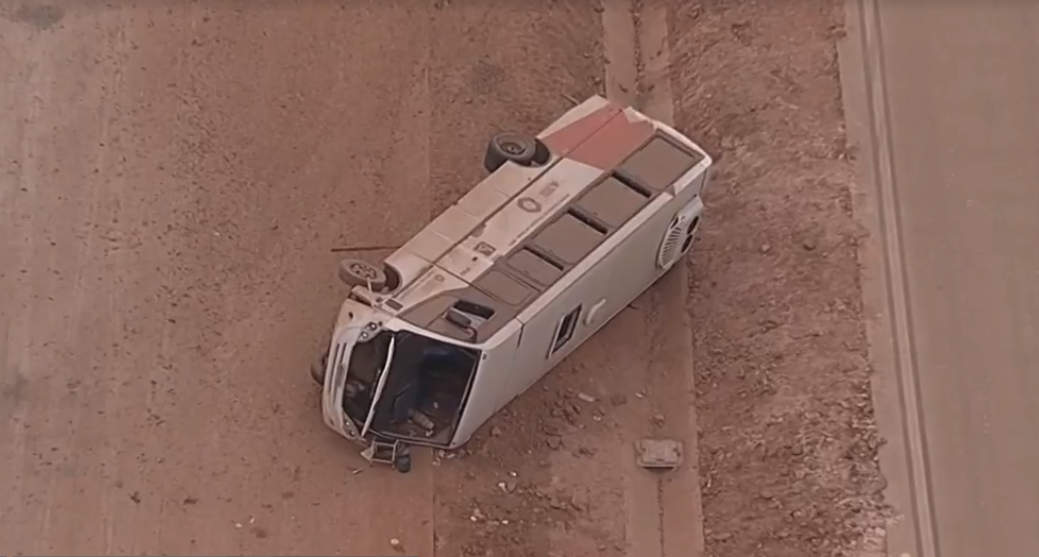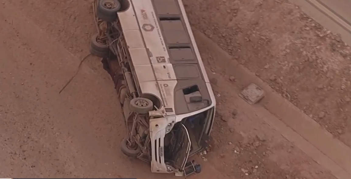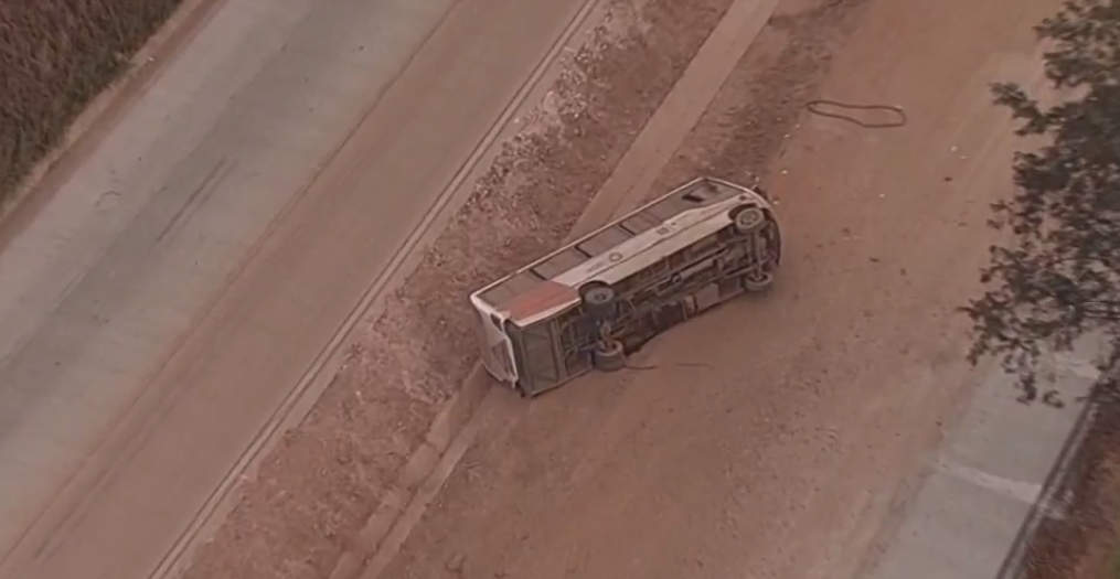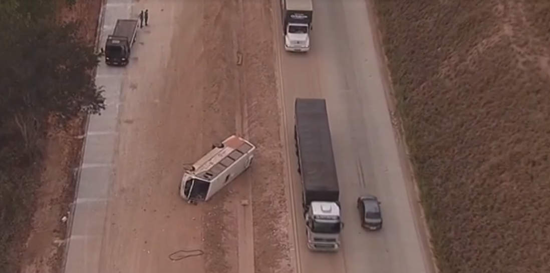 O veículo transportava 14 passageiros e tombou às margens da rodovia. O Corpo de Bombeiros foi acionado. Houve o atendimento a doze vítimas, sendo duas mais graves e não houve mortes.