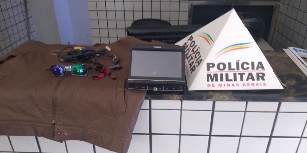 Foram recuperados um aparelho de dvd automotivo, mochila com várias ferramentas, dois pen drives, óculos e jaqueta de couro.