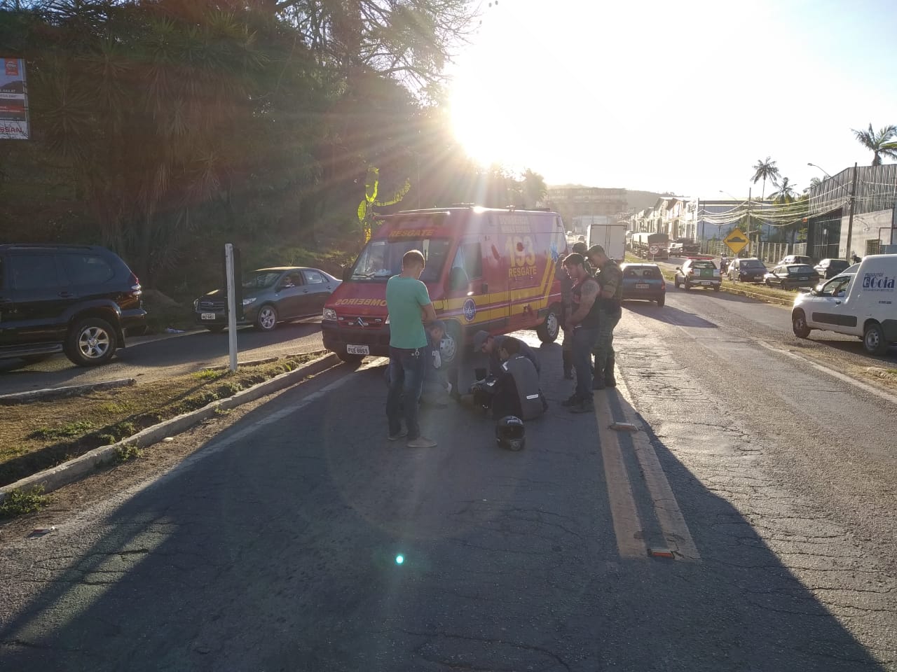 De acordo com o Sargento Bastos, do Corpo de Bombeiros, a colisão envolveu um carro e uma motocicleta. “Chegamos e encontramos o motociclista caído na pista da rodovia. Ele sofreu contusão no tornozelo e foi encaminhado para a UPA (Unidade de Pronto Atendimento)”, relatou.