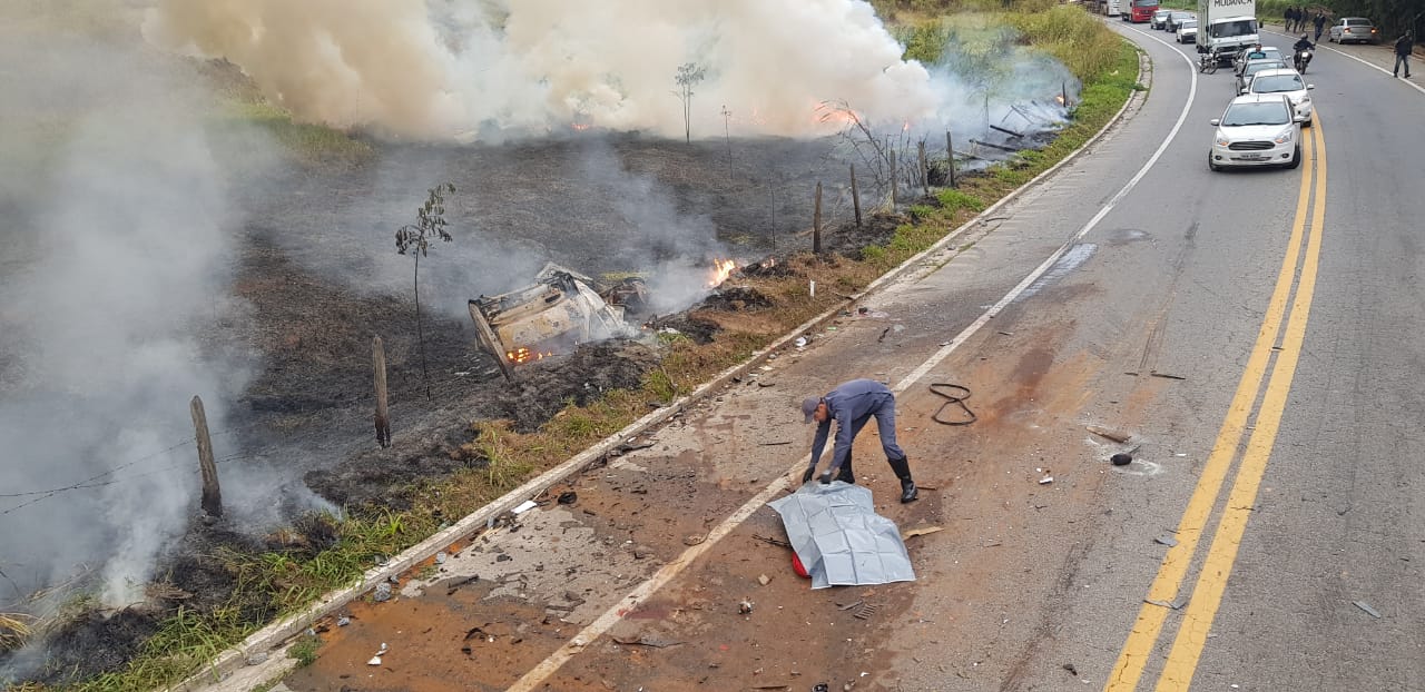 Segundo as informações iniciais, a colisão frontal envolveu um caminhão com placa de Reduto e um Fiat Uno de Martins Soares. No impacto, o carro de passeio se incendiou após capotar e parar na margem da rodovia.