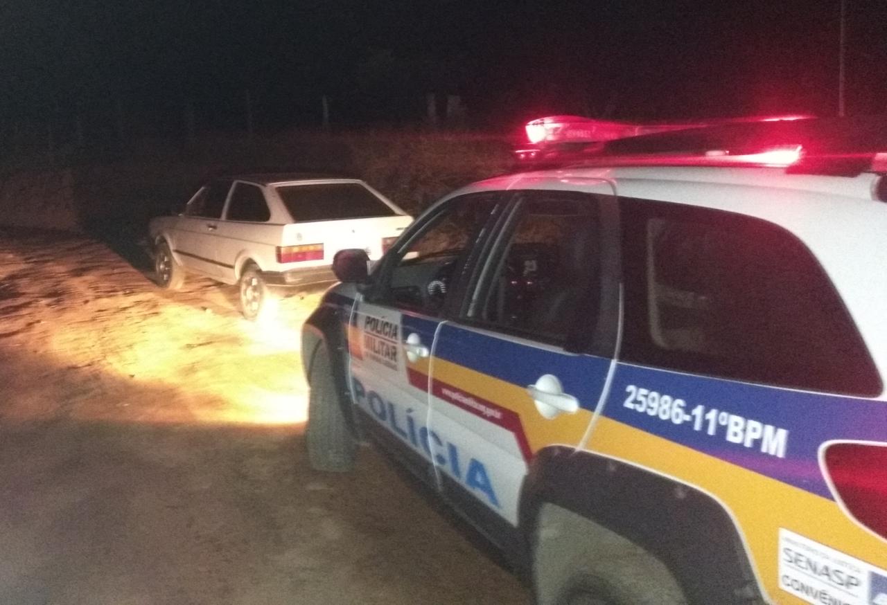 No início da noite, os policiais foram acionados por denúncia anônima de que havia um Gol estacionado em local suspeito, na estrada do córrego Feijoal, acima da mata da AABB.