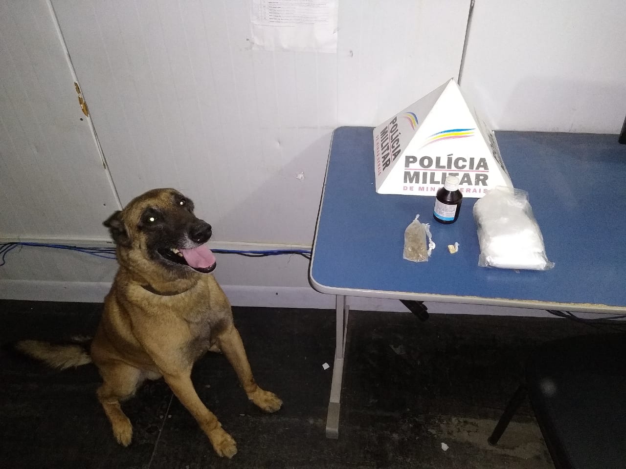 No lote, um dos cães localizou, em meio aos entulhos, uma porção de maconha.