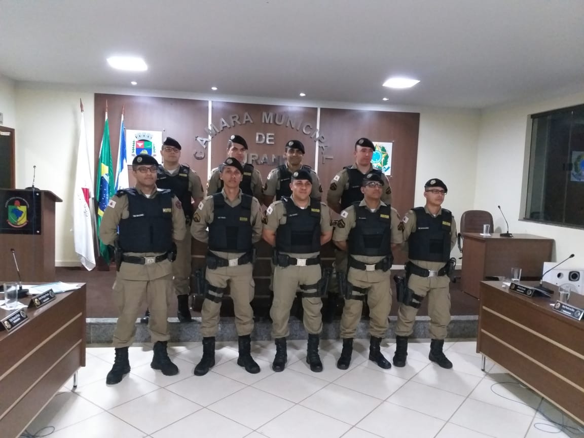 Os oito integrantes do destacamento da polícia militar foram agraciados com “moções de louvor”. A solenidade foi realizada durante sessão ordinária no plenário da Câmara Municipal.