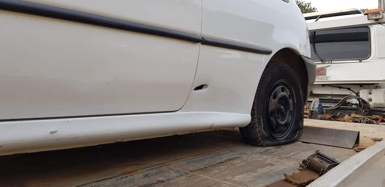 Um dos disparos da PRF acertou o pneu traseiro do Gol. O condutor perdeu o controle da direção, rodou com o veículo e o abandonou sobre a pista. O autor fugiu por um matagal das proximidades.