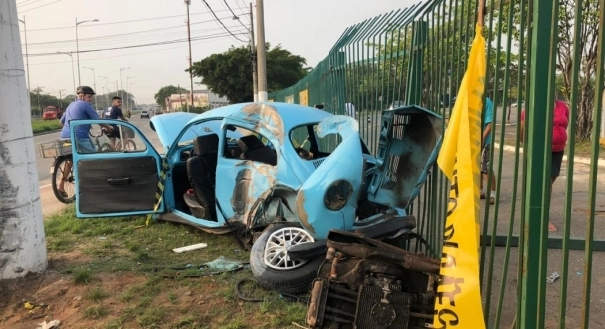 O condutor do Fusca e outros três amigos saíram do trabalho, em Vila Velha, para buscar a jovem na Rodoviária de Vitória. O acidente aconteceu quando eles retornaram para o município. Após bater no poste, por volta das 23h30, o carro rodou na pista e só parou ao colidir contra a grade de proteção de um hipermercado.