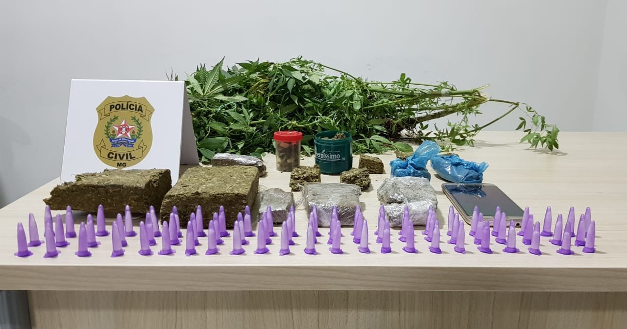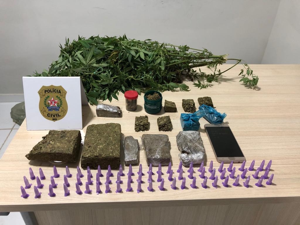 Durante esta quarta-feira, policiais foram até a casa do investigado, em Simonésia. No local, foram apreendidas maconha e cocaína e ainda um pé de maconha.