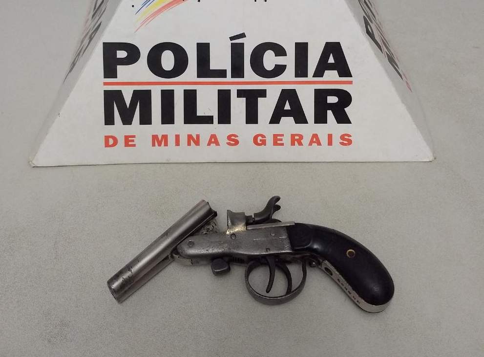 Imediatamente a equipe policial deslocou até o local, onde encontrou o autor de 21 anos, foi realizada averiguação, e durante busca pessoal e buscas em seus pertences, foi localizada dentro de sua mochila, uma garrucha marca Rossi calibre 22.