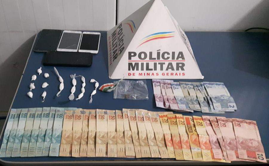 Durante abordagem e busca nos autores, foram localizadas e apreendidas dezenove porções de cocaína, duas porções de maconha, R$1.569,00 e 04 aparelhos celulares.
