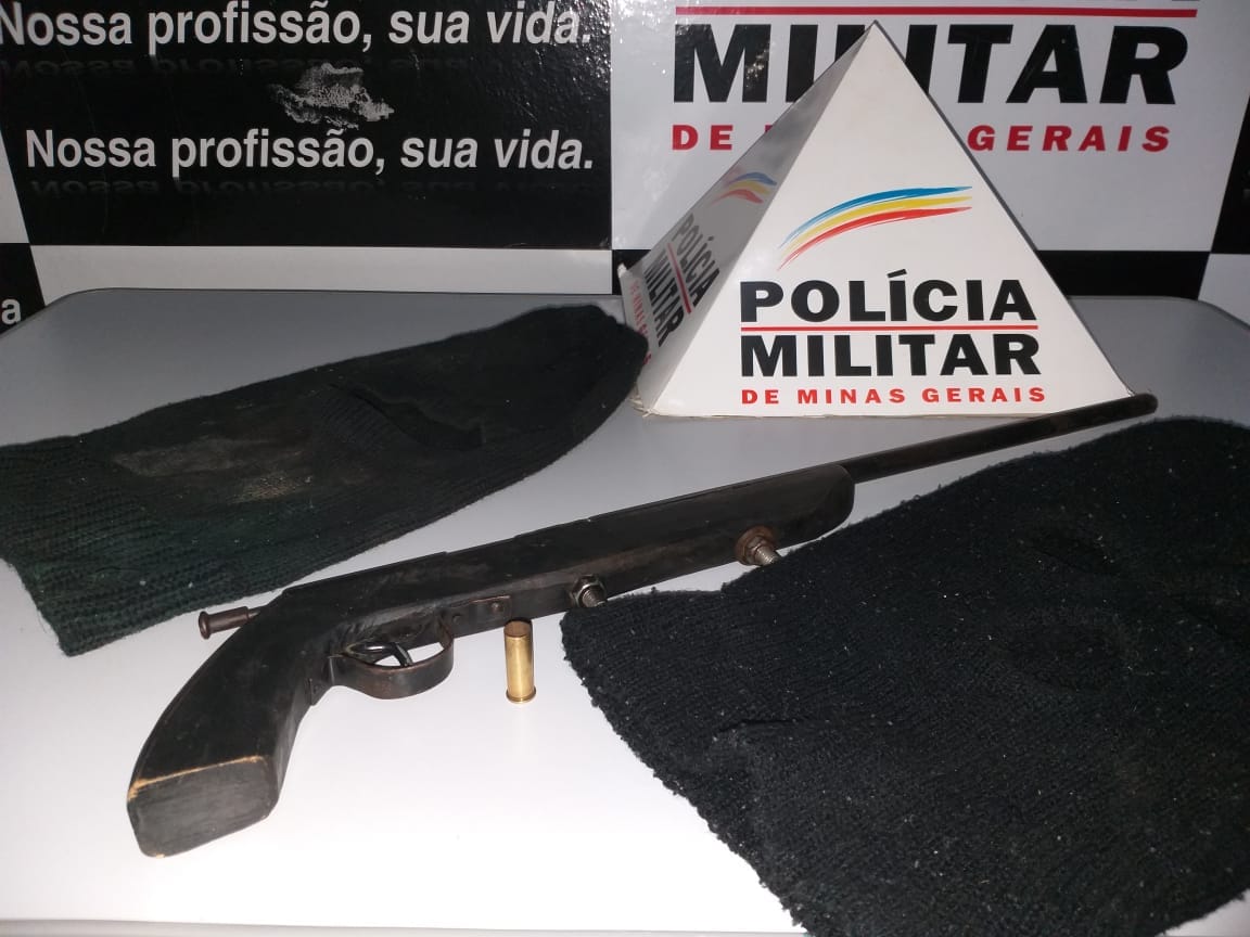 Diante das denúncias, os militares foram até casa do suspeito, no bairro Bela Vista. Durante a varredura, os policiais encontraram a arma de fogo, mais um cartucho de munição e duas toucas.
