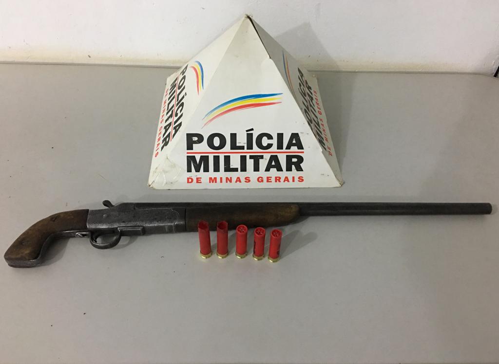Os policiais foram até a casa dele e apreenderam a espingarda calibre 32 com dois cartuchos deflagrados e três intactos.