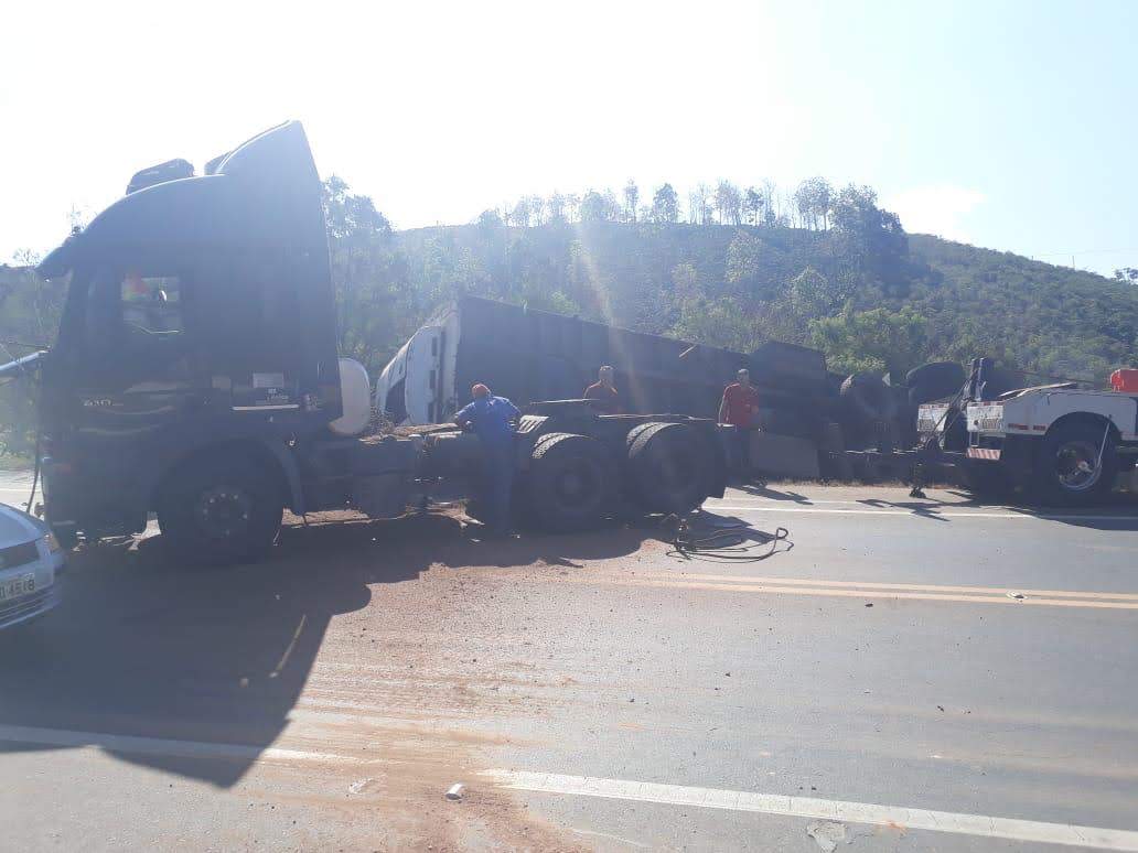 SANTA BÁRBARA DO LESTE (MG) - Uma carreta transportando melões se envolveu em um acidente no KM 557 da BR-116, no trecho conhecido como Serra do Pião, próximo a Santa Bárbara do Leste, neste domingo (08/09).