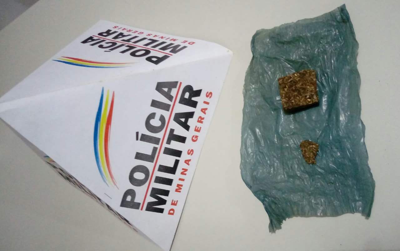 A equipe policial deparou com o autor de 23 anos. Ao avistar a viatura, ele ficou muito nervoso e foi submetido a busca pessoal, sendo encontrado um tablete de maconha.