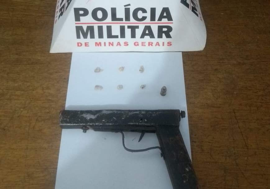 Os militares fizeram buscas na casa do jovem e apreenderam uma arma de fabricação artesanal, seis pedras de crack, celulares de origem duvidosa e uma munição calibre 480.