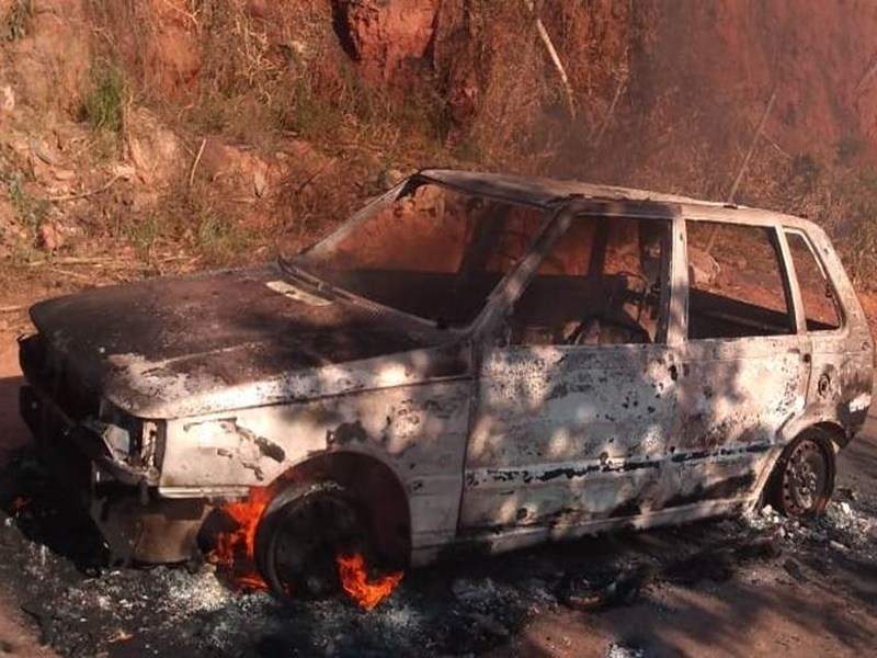 SANTANA DO MANHUAÇU (MG) - Um veículo Fiat Uno pegou fogo na quinta-feira, 12/09, na localidade de Santa Filomena, na zona rural de Santana do Manhuaçu.