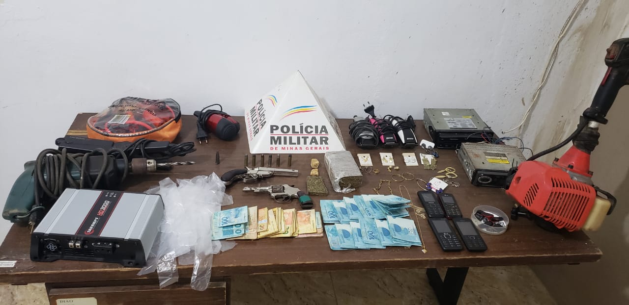 Ainda foram encontrados pela PM: uma derriçadeira Nakashi, um som automotivo Awa, um som automotivo Positron, dez pares de brincos bijuterias, dois cordões bijuterias, uma pulseira bijuteria, uma furadeira Bosch, uma capinha de cerâmica, um secador de cabelos, três máquinas de cortar cabelos, um módulo Tarants, um celular Nokia, dois celulares LG, um celular positivo, três pendrive e quatro cartões de memórias.