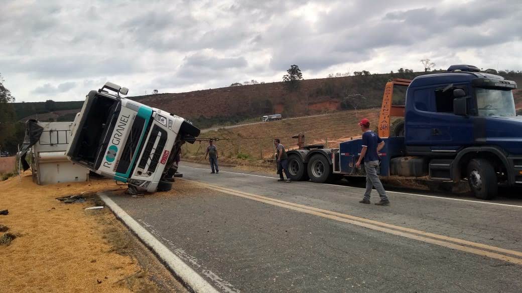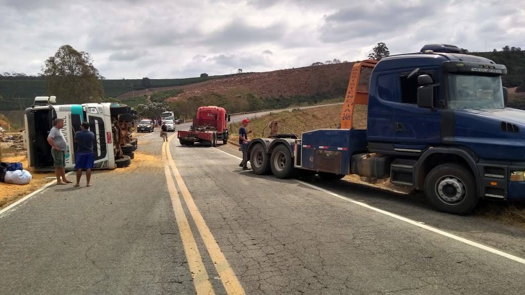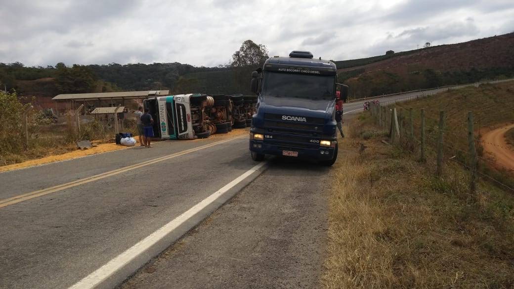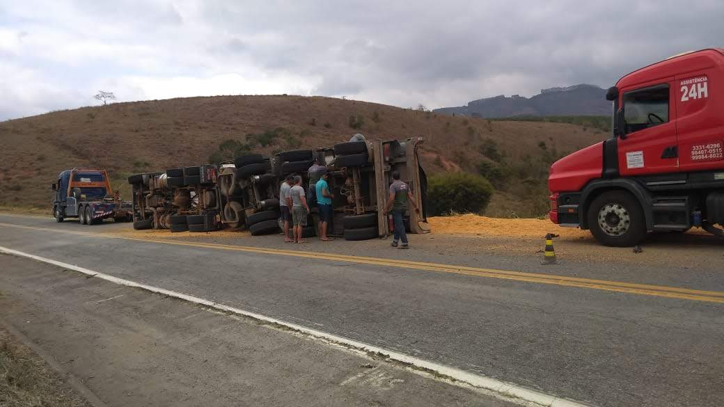 O acidente envolveu uma carreta com carga de milho que ia sentido a Vitória (ES), o motorista não se feriu, somente danos materiais.