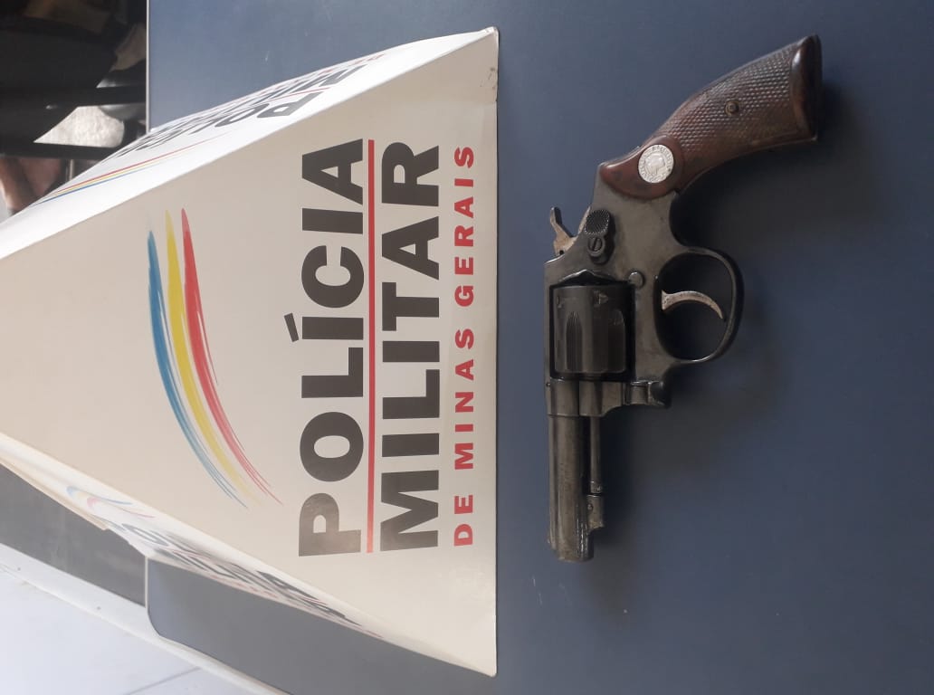 Durante as buscas, foi localizada na lixeira do banheiro, um revólver calibre 32, que foi apreendido e encaminhado à Delegacia de Polícia.