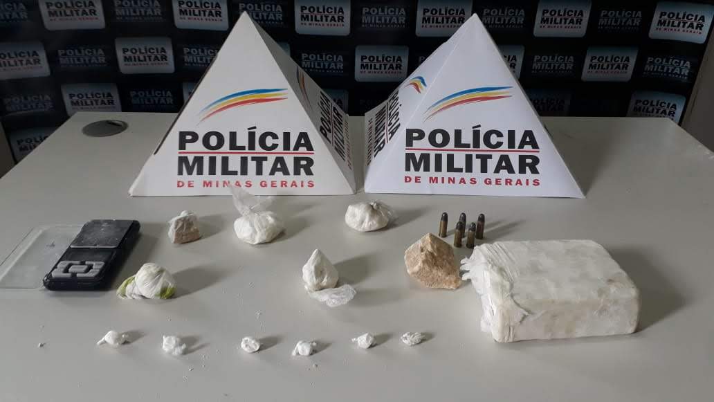 Ele entregou aos policiais uma barra grande de cocaína (600 gramas); quatro pedaços de cocaína (totalizando 90 gramas); 06 papelotes de cocaína; duas pedras grandes de crack; 01 balança de precisão; cinco cartuchos calibre 32 intactos.