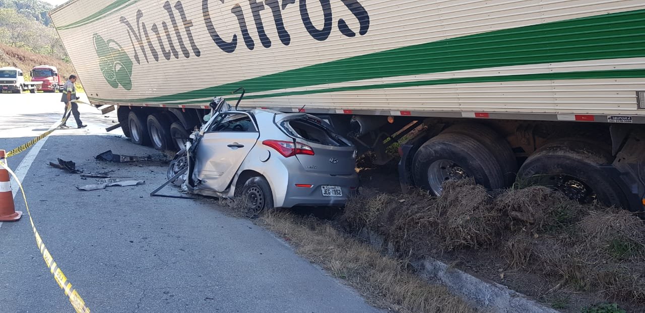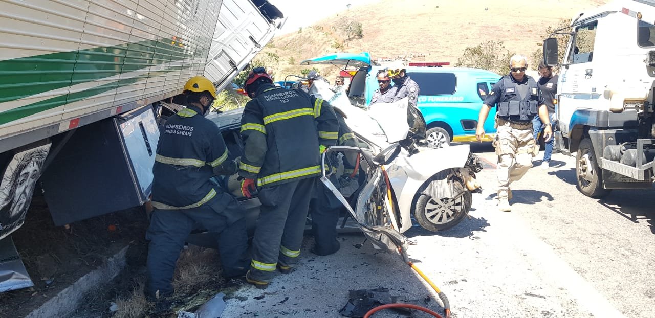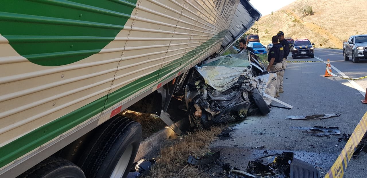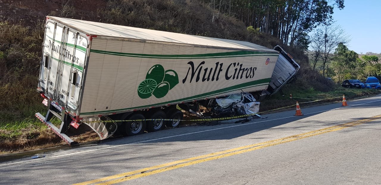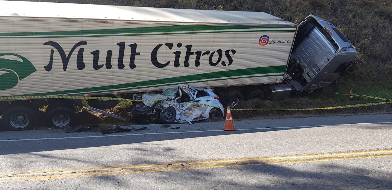O acidente ocorreu, por volta de 6 horas da manhã, e envolveu uma carreta do Espírito Santo com destino ao Acre e um HB20, prata, com placa de Belo Horizonte, que seguia no sentido contrário.