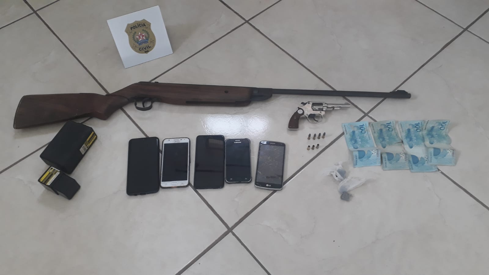 Durante as buscas foi encontrado dinheiro, drogas e armas de fogo. O autor L.H.C.P. foi preso e encaminhado ao presídio de Abre Campo, onde encontra-se a disposição da justiça.