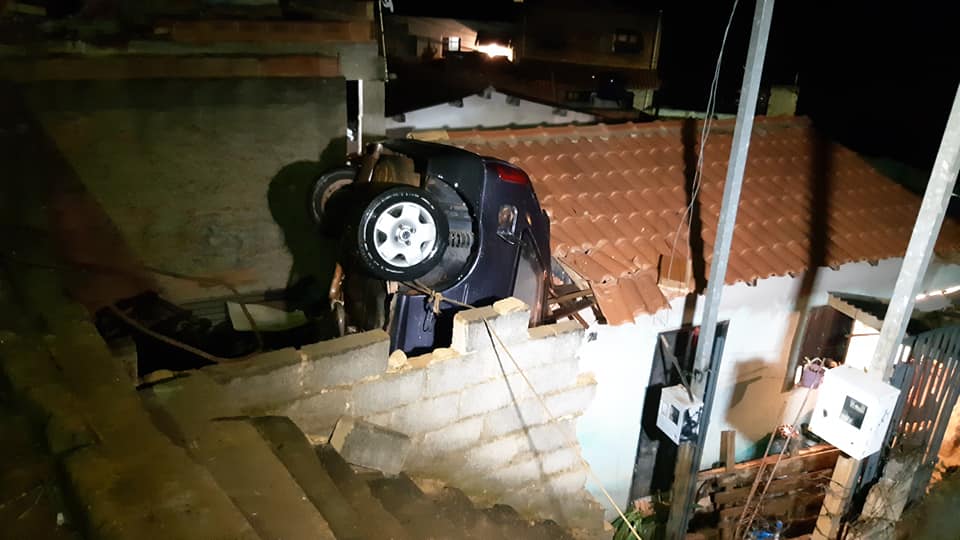 SANTA BÁRBARA DO LESTE (MG) - Uma mulher ficou ferida após cair com o carro que ela dirigia em uma residência localizada abaixo do nível da rua. O acidente ocorreu por volta das 17h30 deste sábado (26/10), na Rua E, no Morro da Antena, em Santa Bárbara do Leste.