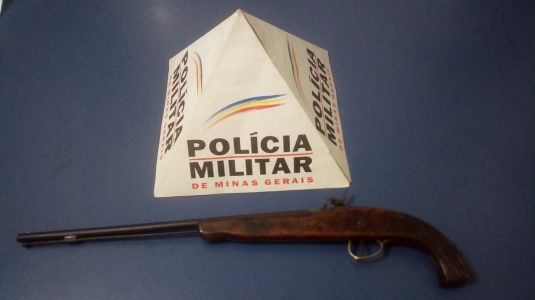 No local, em contato com a proprietária da residência, os militares perceberam que o menor estava muito apreensivo, confirmando que possuía uma arma de fogo e que estaria escondida na estante da sala, sendo localizada uma garrucha polveira, a qual foi apreendida.