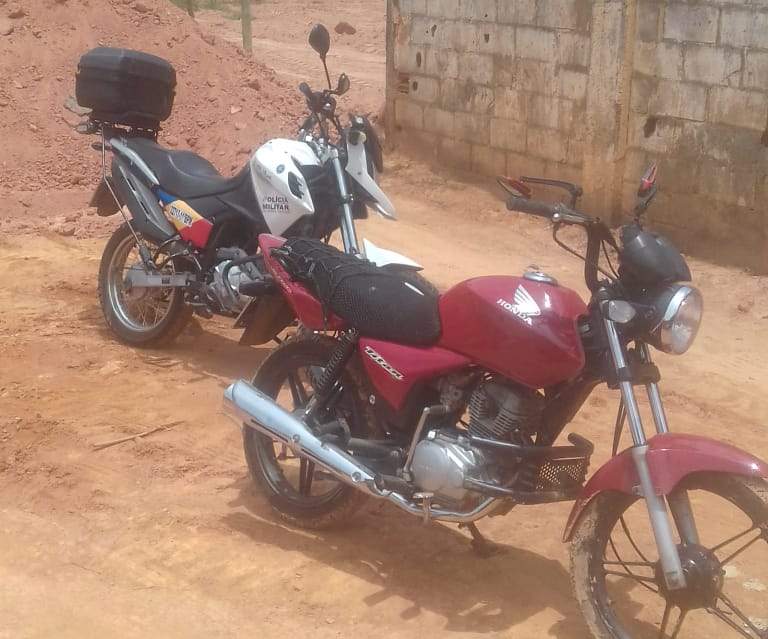 No local, os militares constataram que se tratava da motocicleta Honda, modelo CG, cor vermelha.