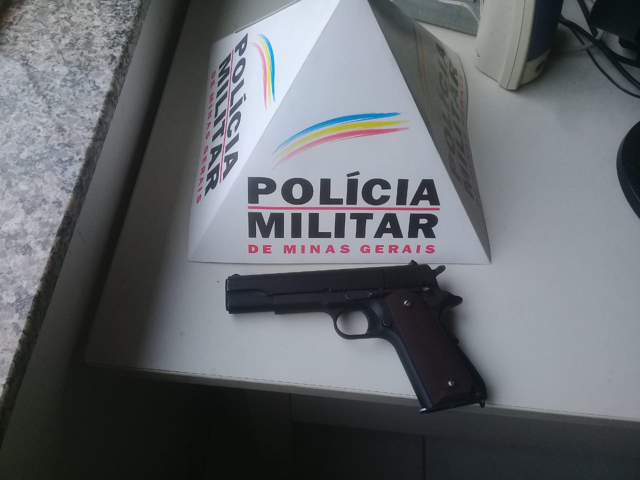 A equipe policial foi até o local e, durante buscas, foi encontrada a pistola, contudo foi verificado tratar-se de uma arma de pressão.