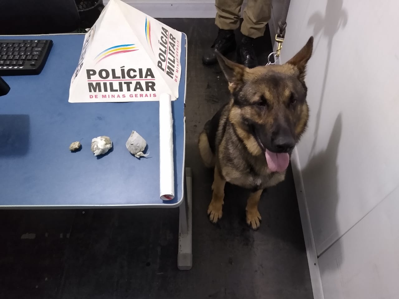 MANHUAÇU (MG) - Com apoio do cão farejador Aquiles, a Polícia Militar de Manhuaçu apreendeu drogas no bairro São Francisco de Assis, na sexta-feira, 01/11.