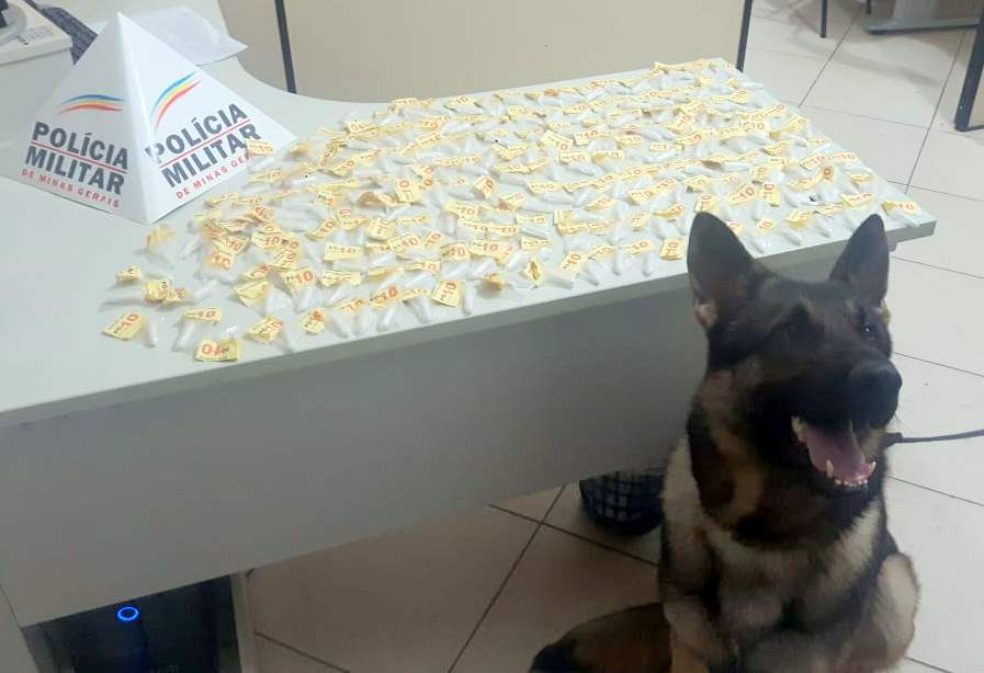 A PM realizou Operação Viagem Segura/Batida Policial com buscas e vistorias em ônibus. A ação teve apoio da equipe de Rondas com Cães e aplicou o cão farejador Aquiles. Ele indicou onde estavam as drogas.