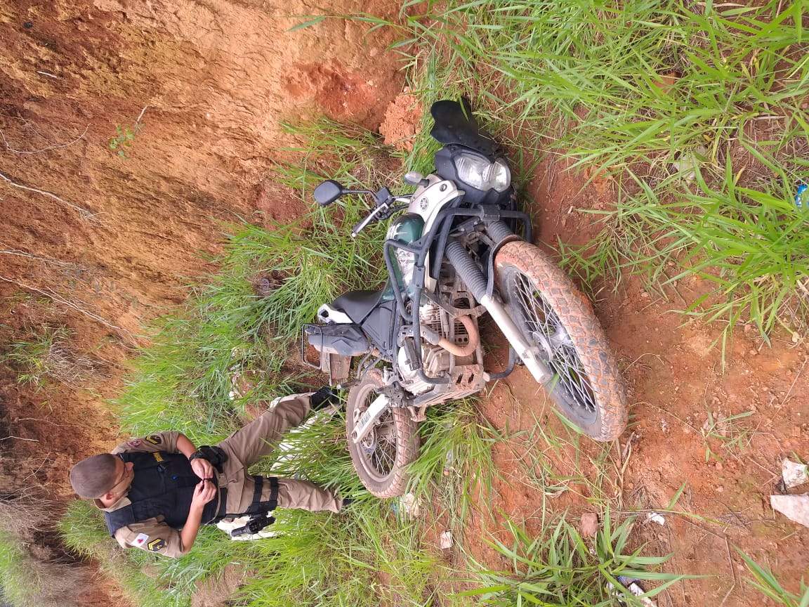 Em diligências, o autor de 23 anos foi localizado e afirmou ter entregue a motocicleta a outros dois cidadãos, de 19 e 15 anos, em troca de pedras de crack, porém os mesmos não foram localizados. Informou , ainda que a motocicleta estaria escondida em um pasto, sendo esta recuperada e removida ao pátio credenciado.