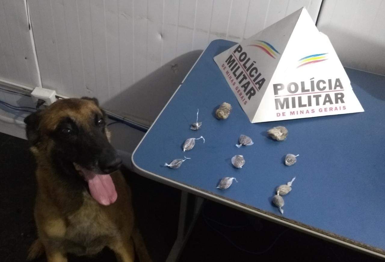 MANHUAÇU (MG) - Com ajuda do cão de faro Titan, PM apreende 11 buchas de maconha no bairro Santana.