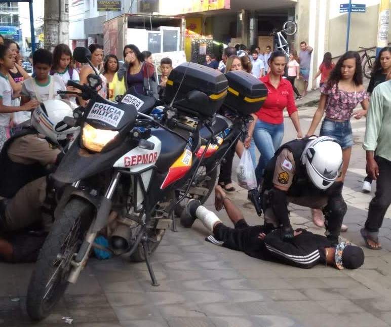 A ação policial chamou atenção de quem passava no trecho do centro. Os militares do motopatrulhamento conseguiram apreender um dos jovens na calçada, enquanto o outro foi localizado dentro de uma farmácia. Eles ofereceram resistência e gritavam provocações aos policiais e comerciantes.