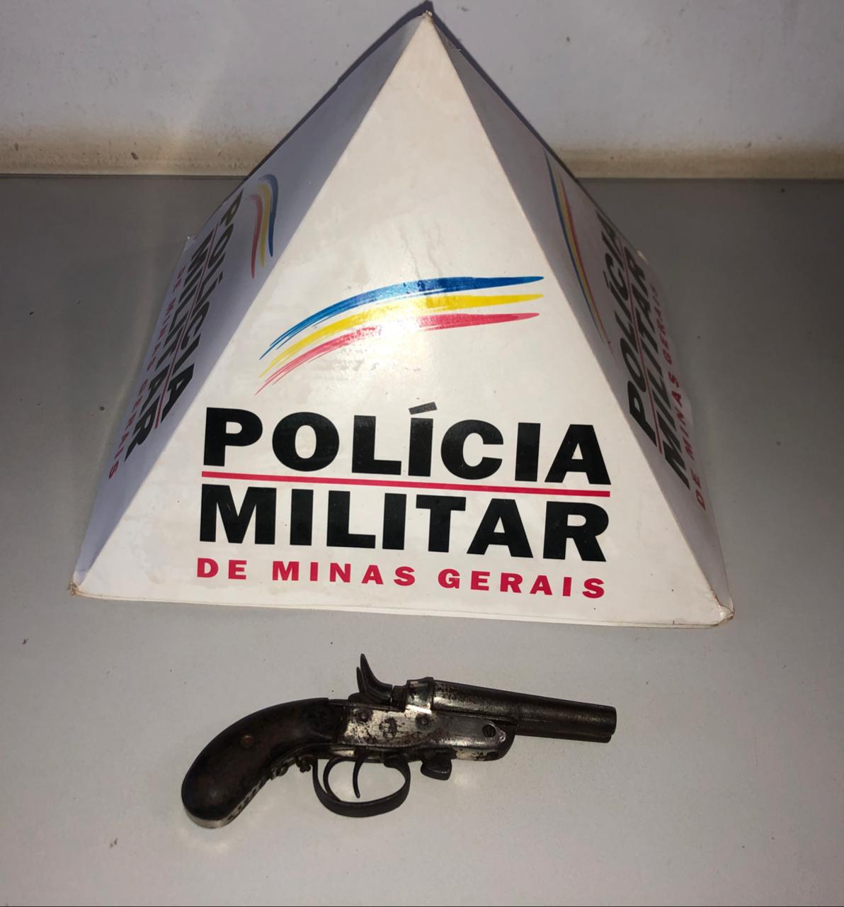 A arma foi apreendida e encaminhada à Delegacia de Polícia Civil.