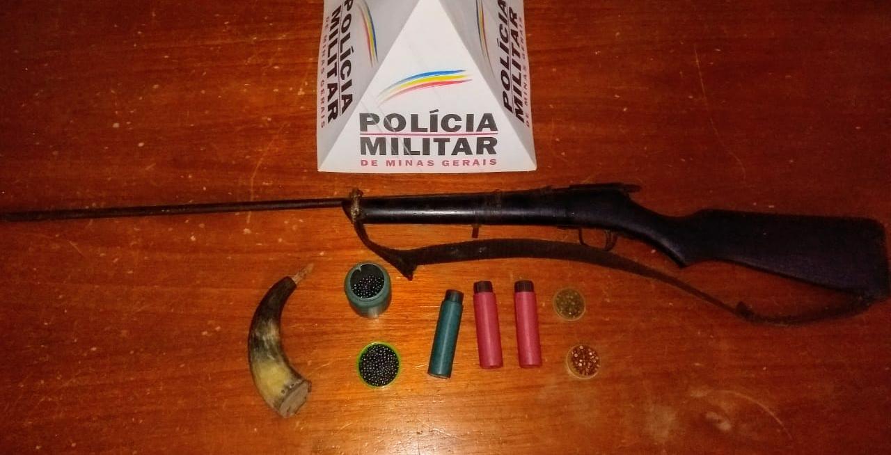 No local, em contato com o indivíduo de 56 anos, ele confirmou possuir uma arma de fogo tipo espingarda sem calibre ou marca definidos.