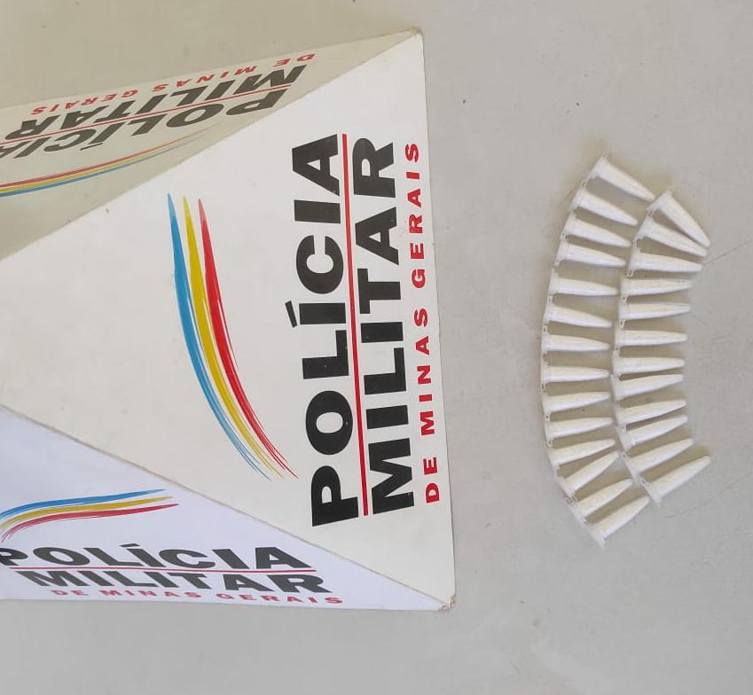 No local durante contato com o responsável, um indivíduo foi visualizado dispensando um invólucro no quintal de uma residência, que ao ser verificado foram encontrados 26 pinos de cocaína.