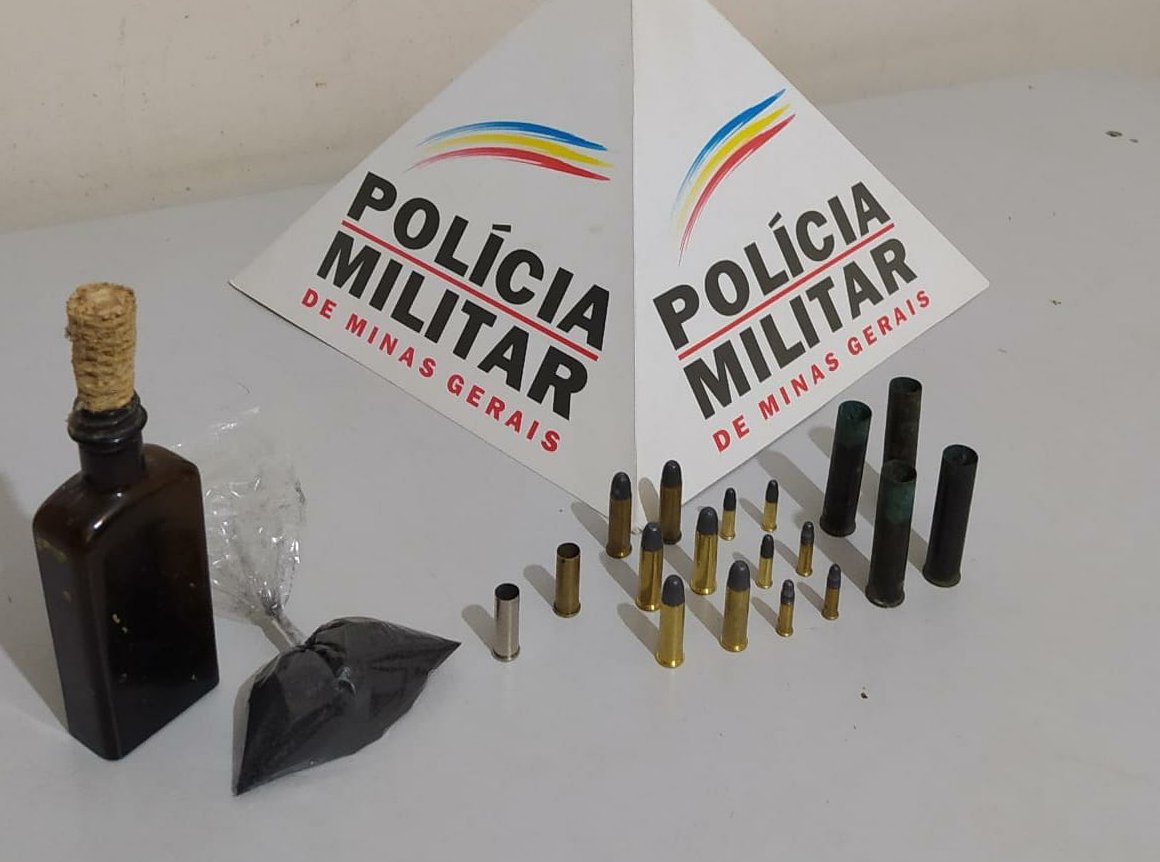 No local, o denunciado disse não possuir armas de fogo. Foram realizadas buscas na residência, sendo localizadas 06 munições intactas calibre 38 e 06 calibre 22, 02 munições deflagradas calibre 38 e 04 calibre 28, além de 02 invólucros contendo pólvora e chumbo.