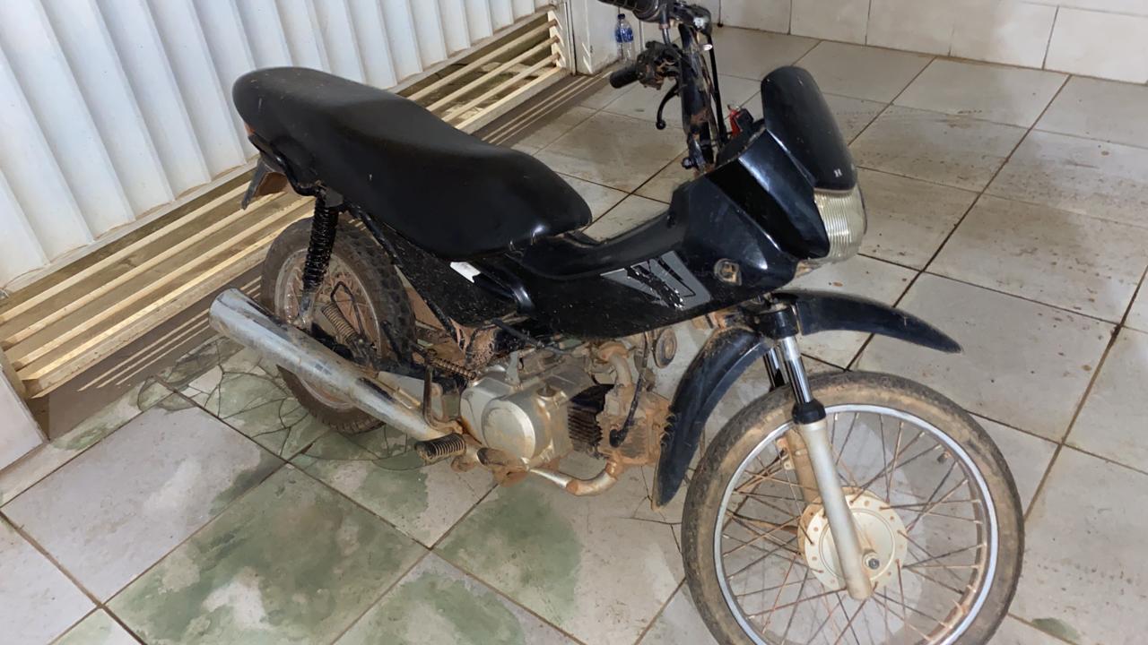 Durante as buscas foram localizadas uma espingarda calibre 22 em um depósito e a motocicleta, produto de furto ocorrido no dia 30/12/2020, na garagem com o chassi raspado.
