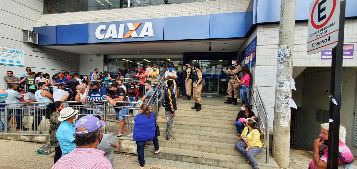 MANHUAÇU (MG) - Um dos maiores problemas de Manhuaçu em relação à pandemia do novo coronavírus é a interminável fila da agência da Caixa Econômica Federal. Centenas de pessoas passam a noite no local com a expectativa de tentarem ser atendidos pelo banco. O local também virou espaço para picaretas se aproveitarem da demanda e venderem vagas.