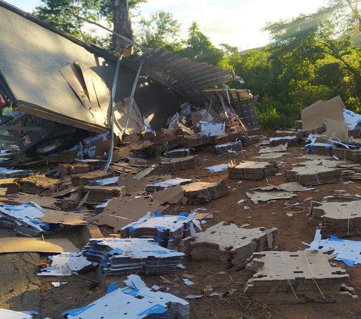 MARTINS SOARES (MG) - Uma carreta tombou no km 05 da BR-262, em Martins Soares, nesta quinta-feira, 21/01.
