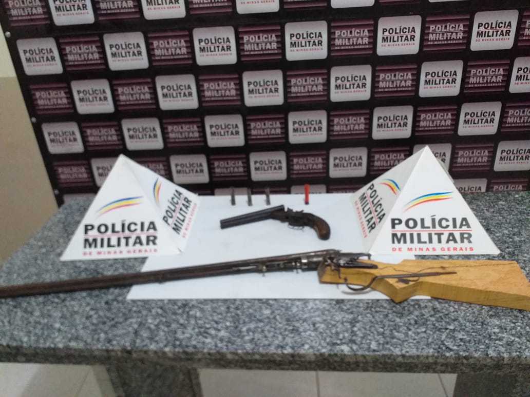 A partir daí, depois que saiu da casa, essa pessoa acionou a PM. Os policiais foram ao local e encontraram, em uma mesa, do lado externo da casa, um saco com uma garrucha e uma espingarda dois canos, além de três cartuchos deflagrados e um intacto.